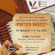 ( 0 Голосов ) С 23 февраля 2021 года стартует новый этап масштабной детско-юношеской патриотической акции «Рисуем Победу». Всероссийская акция, проводимая ежегодно, начиная с 2012 года, станет международной. Славные подвиги поколения победителей отразят в своих рисунках и эссе не только юные россияне, но и их сверстники из Белоруссии, Казахстана, Армении, Узбекистана, Киргизии и других государств.