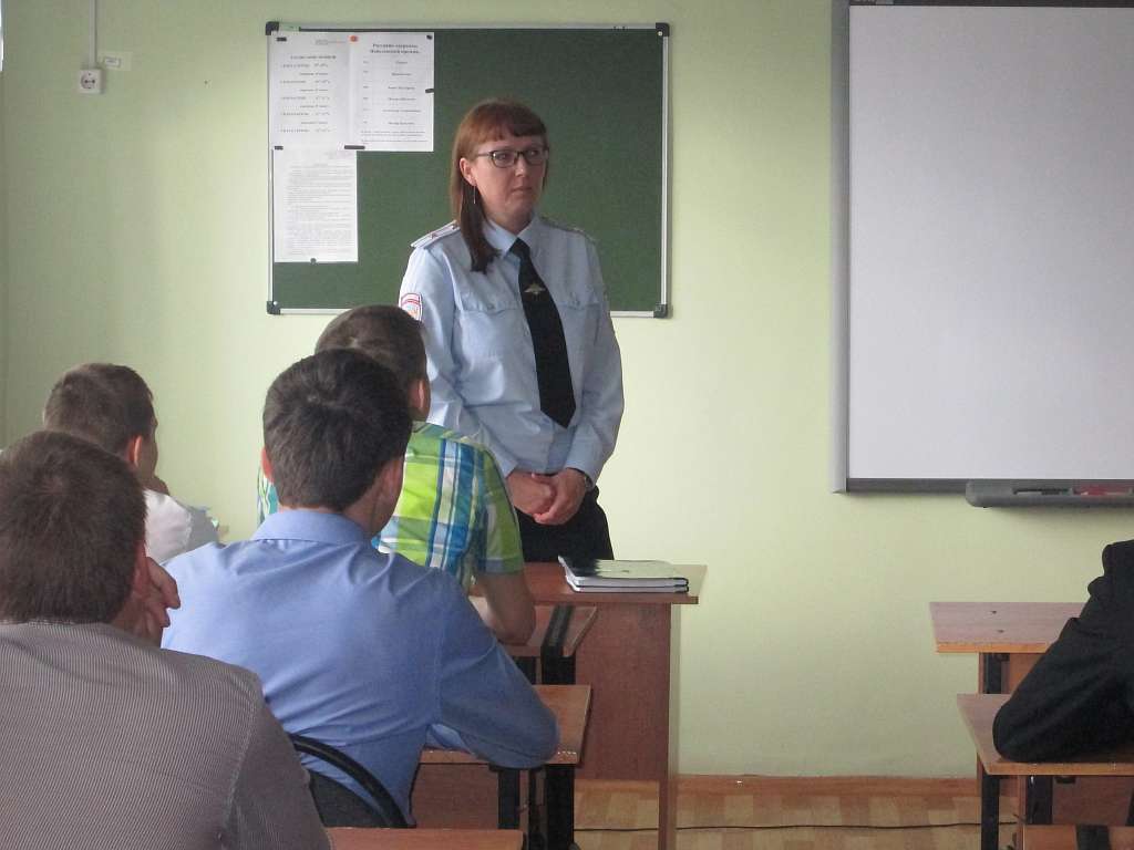 ( 1 Голос ) 28 сентября в техникуме была организована встреча обучающихся с начальником отделения по делам несовершеннолетних УМВД Морозовой Е.А. в рамках правового месячника. Морозова Е.А. провела беседу со студентами групп №12, 22 об ответственности несовершеннолетних за нарушение законов РФ . |